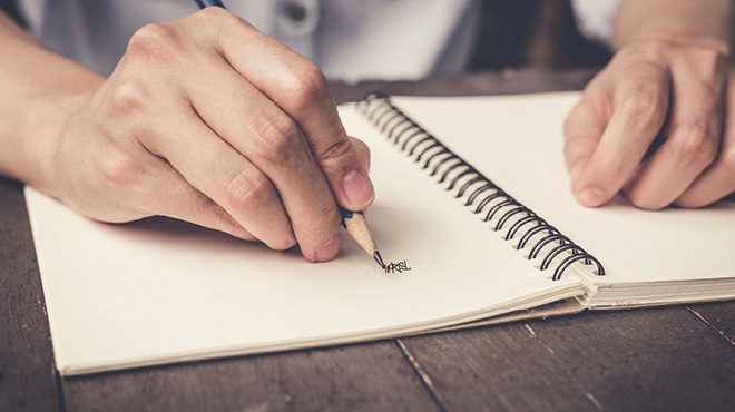 The act of writing becomes slower, letters become smaller and the words crowd together. - Tremors